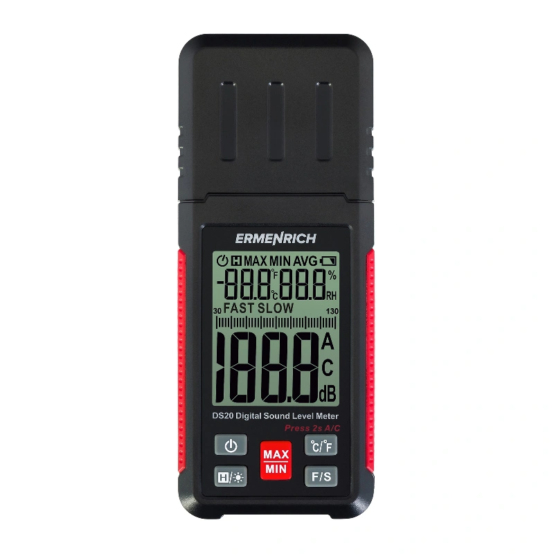 Ermenrich Seek DS20 – это устройство для измерения шума, температуры и влажности. С ним можно быстро проверить уровень шума и микроклимат как в помещении, так и на улице.