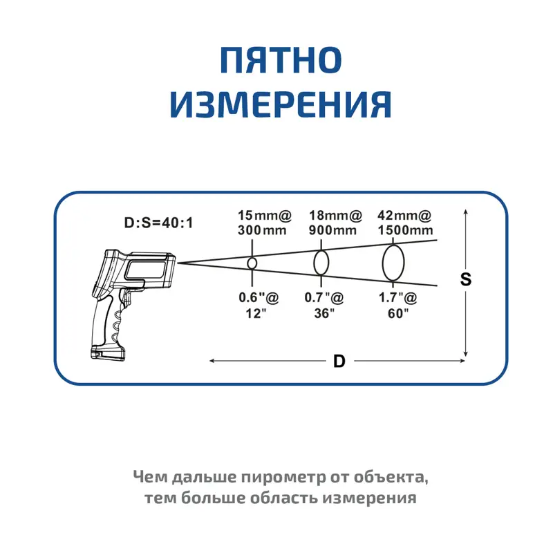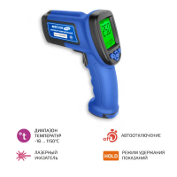 Пирометр 16640 - надёжный инфракрасный прибор для точного измерения температуры. Диапазон измерения температуры поверхностей от - 18°C до 1150°C. Оптическое разрешение пирометра 50:1, поэтому можно фиксировать температуру на расстоянии не теряя признаки точности, в диапазоне -18 …0°C, но учитываем фактор погрешности 3°C. При диапазоне 0°C… 100°C - погрешность 2°C. при температуре выше 100°C - погрешность не более 2°C (или 2% значения).