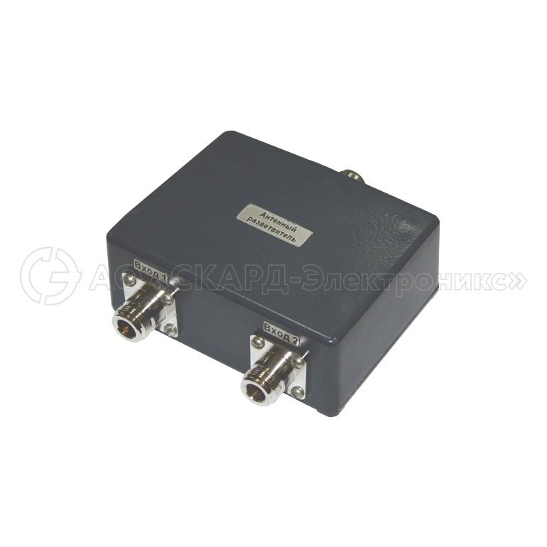 Антенный разветвитель изготовлен в экранированном корпусе и имеет один коаксиальный СВЧ — вход и два коаксиальных СВЧ выхода с волновым сопротивлением 50 Ом N типа (розетка).