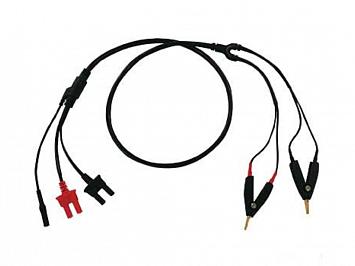 4-проводной кабель имеет специальный заземляющий/экранирующий коннектор (гнезда GND/земля, GUARD/защита) для устранения эффекта поверхностной проводимости при измерении больших сопротивления. Предназначен для измерителей сопротивления GOM-7804, GOM-7805