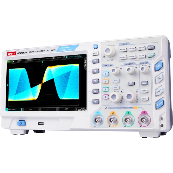 UNI-T UPO2104 - это современный запоминающий осциллограф бюджетного ценового класса с цифровым люминофором, с 4-мя аналоговыми входными каналами и полосой пропускания до 100 МГц.