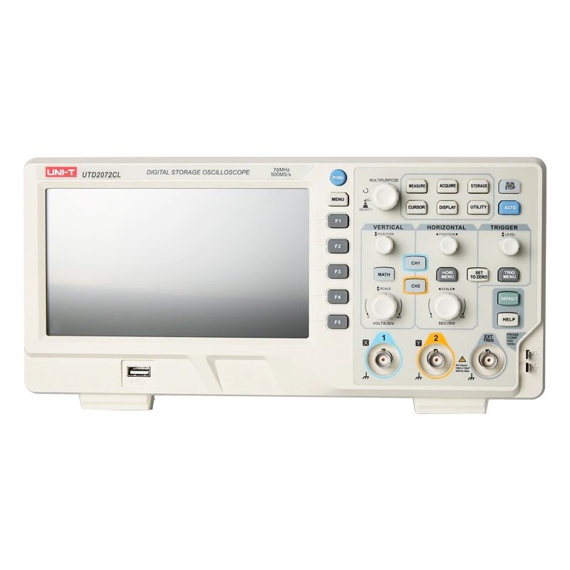 Цифровой 2-х канальный осциллограф UTD2072CL в настольном исполнении, осуществляет скоростное, до 500 млн выборок в секунду преобразование аналоговых сигналов в цифровые с последующим выводом информации на дисплей в виде графиков.
