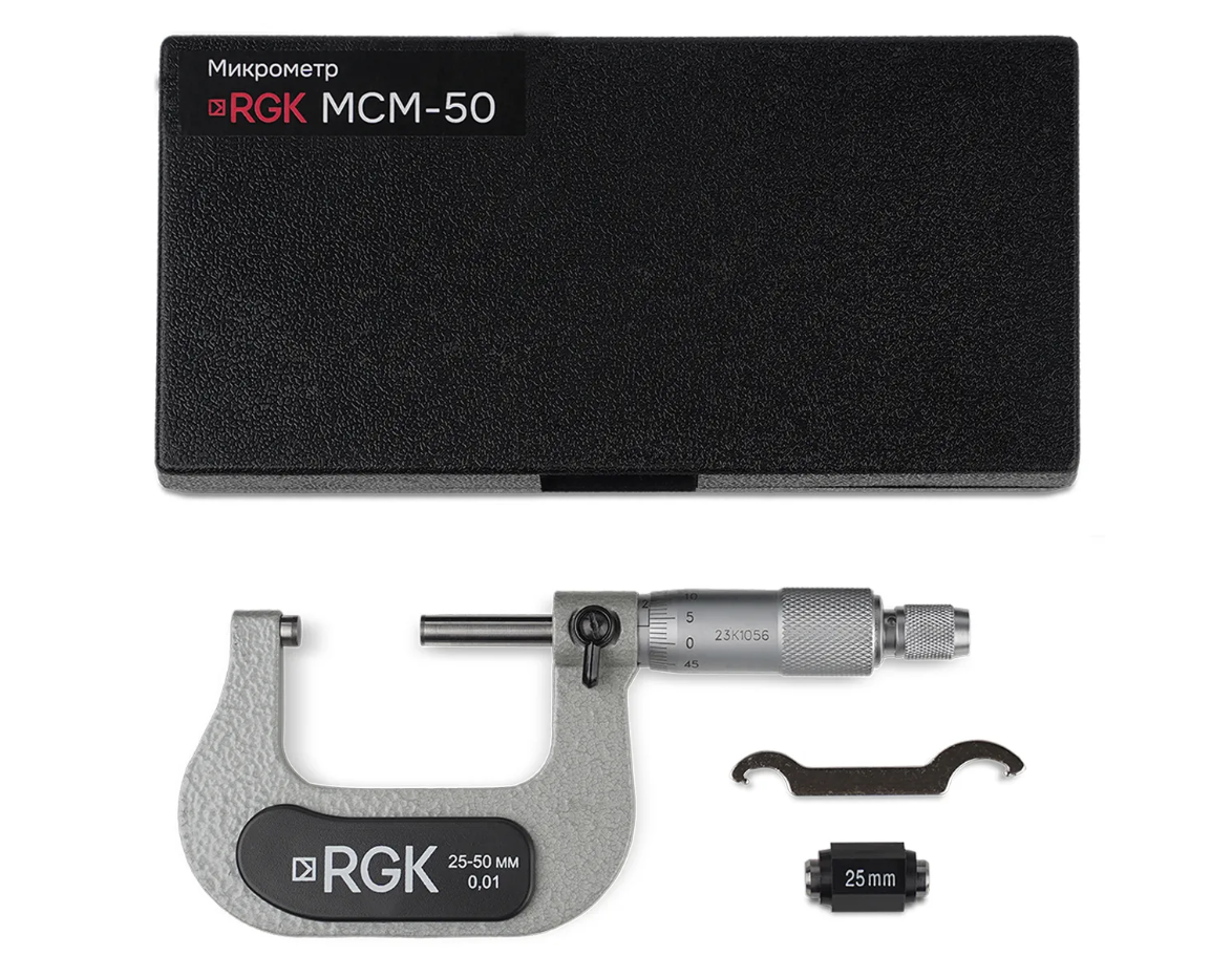 Модель обеспечивает измерение наружных размеров в диапазоне от 25 до 50 мм с разрешением до сотых долей миллиметра.