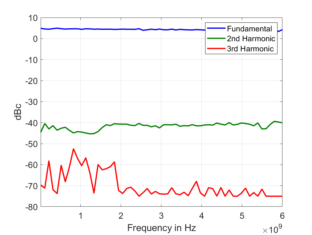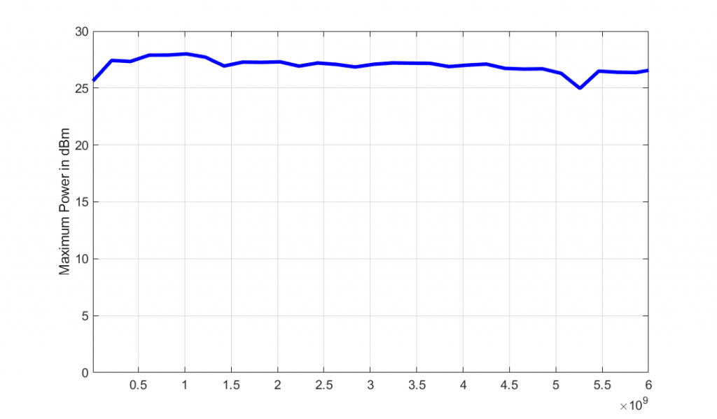 Рисунок 1: Максимальная мощность почти во всем диапазоне частоты выше чем +25 дБм, до 6 ГГц